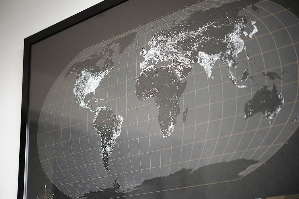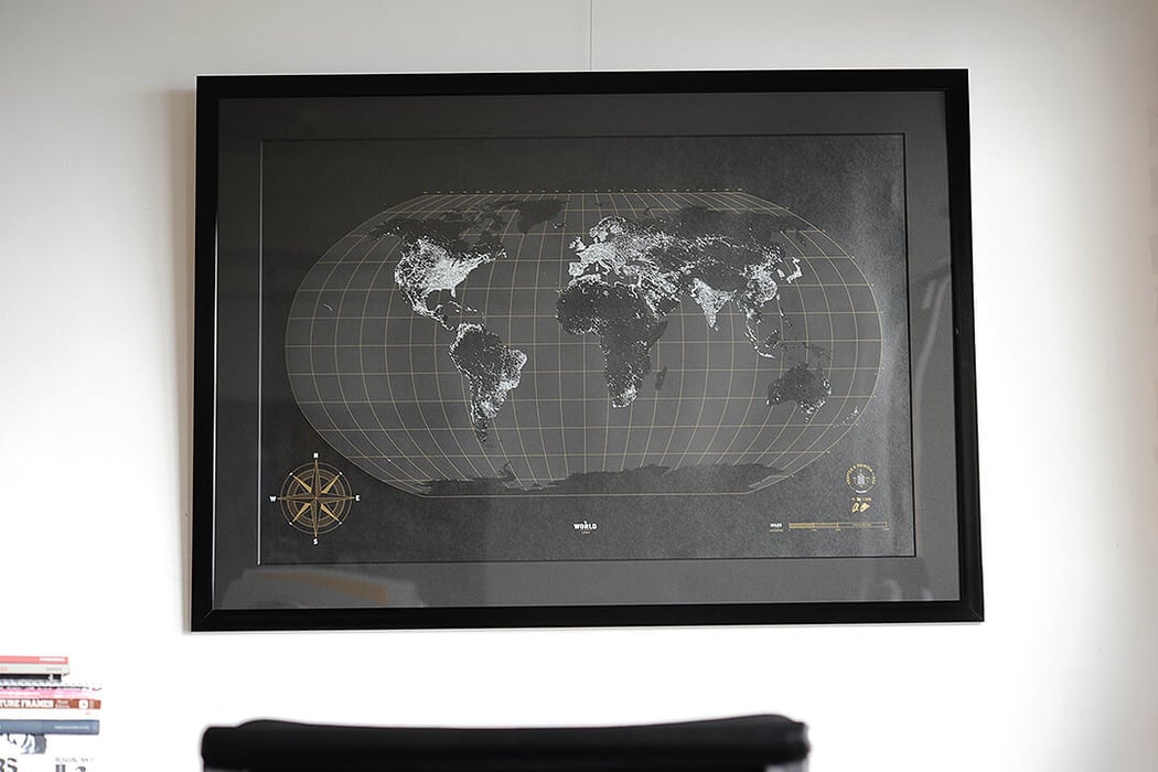Andrew Althouse(アンドリュー・アルトハウス)のThe World at Nightを額縁は「Eternity Black」、マットボードは「ノーマル素材の黒」で額装しました。