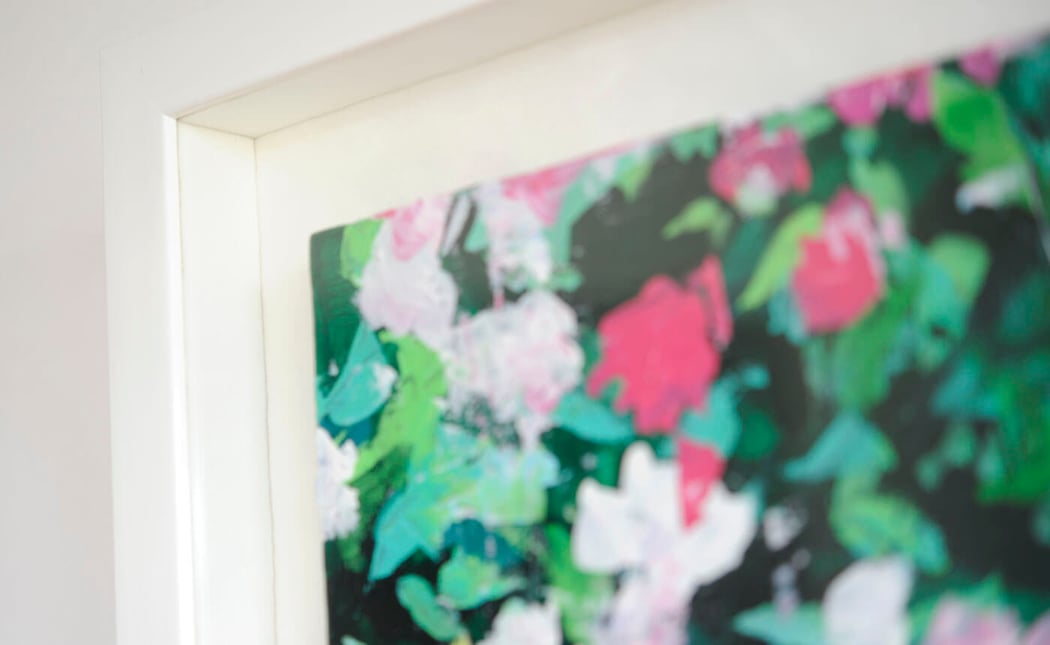 真っ白な額装が華やかな作品を更に引き立てる役割を果たしてくれています。