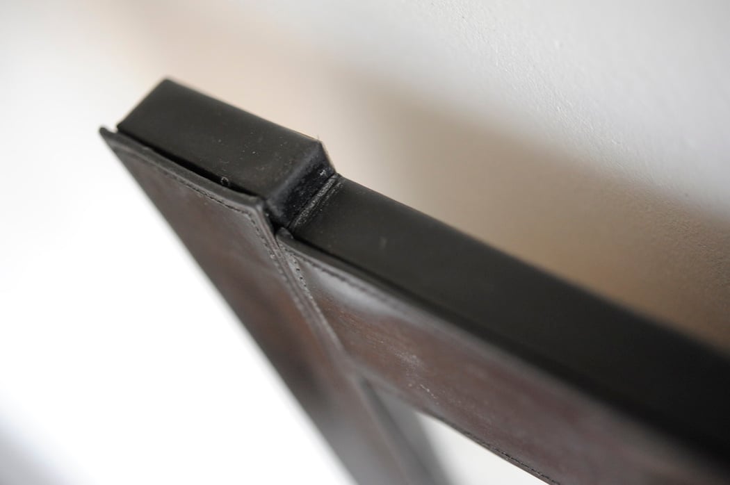 wabisabiと同じように木枠を作り、それにブライドルレザーを張り込んでいます。