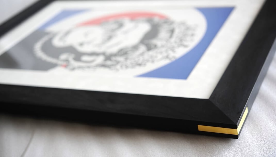 思い入れのある作品や特別な作品には、「今までやったことのない額装にして!」と、こっちに強烈なパスを投げて来ます。