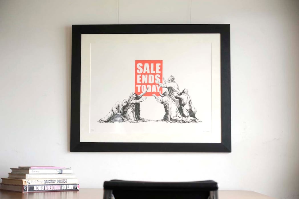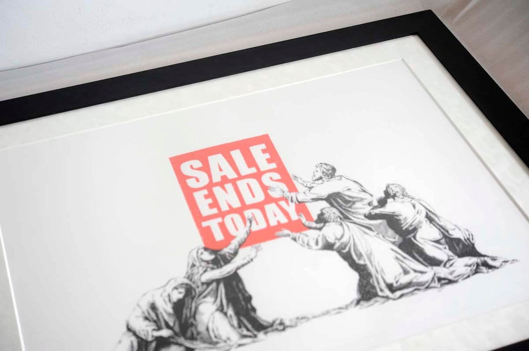 前回(2020年10月9日)に続いて、今回もBanksy(バンクシー)の2017年の作品「SALE ENDS」の額装をご紹介します。