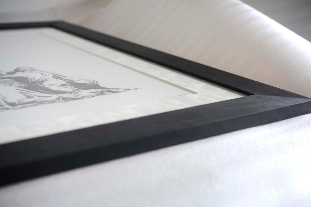 今回は前回と打って変わって木材本来が持つ魅力で勝負した、額縁 WALNUT Blackの額装です。