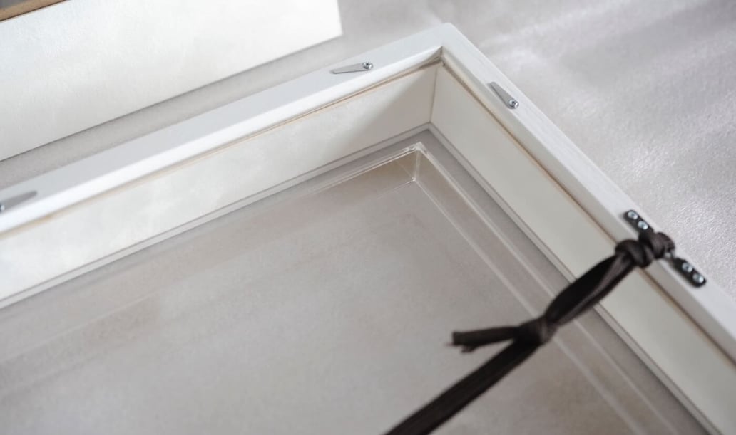 額装を製作するに当たり、たとえペーパー作品であろうともマットボードを付けない場合以外は、仕上がりの質の向上のため、原則、作品をこちらに送りいただいているぐらいですから、セッティングと固定が難しいキャンバス作品の場合は、否が応でも
