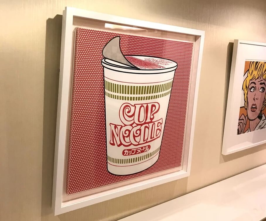 このカップヌードルの縦 180cm×横 180cmのキャンバスは、日清食品の本社に飾られているそうです。
