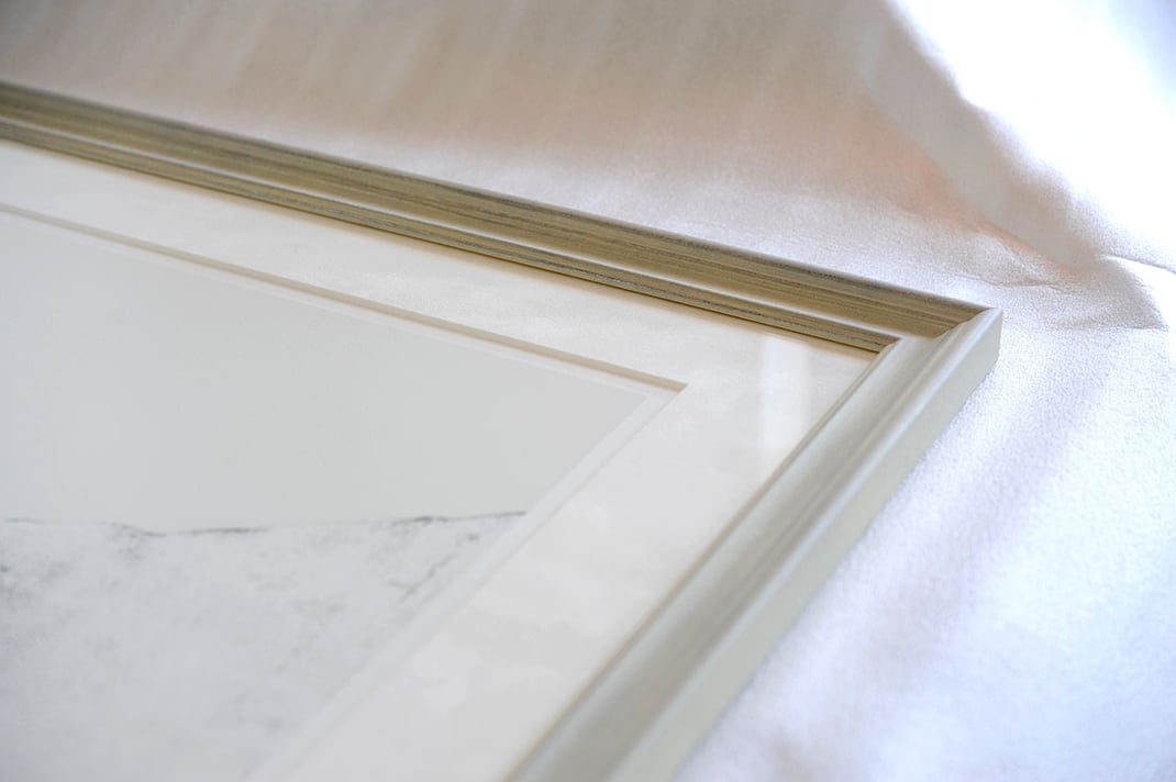 DOLKのCROWN - Whiteを額縁は「Italian White」、マットボードは「コットンスエード白」で額装しました。