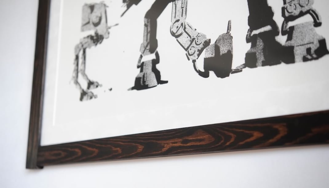 DOLK (ドルク)の"I am your Father"を額縁は「wabisabi Black Brown」、マットボードは「コットンスエード素材の白」で額装しました。