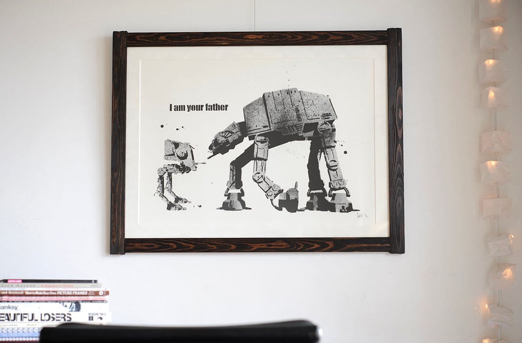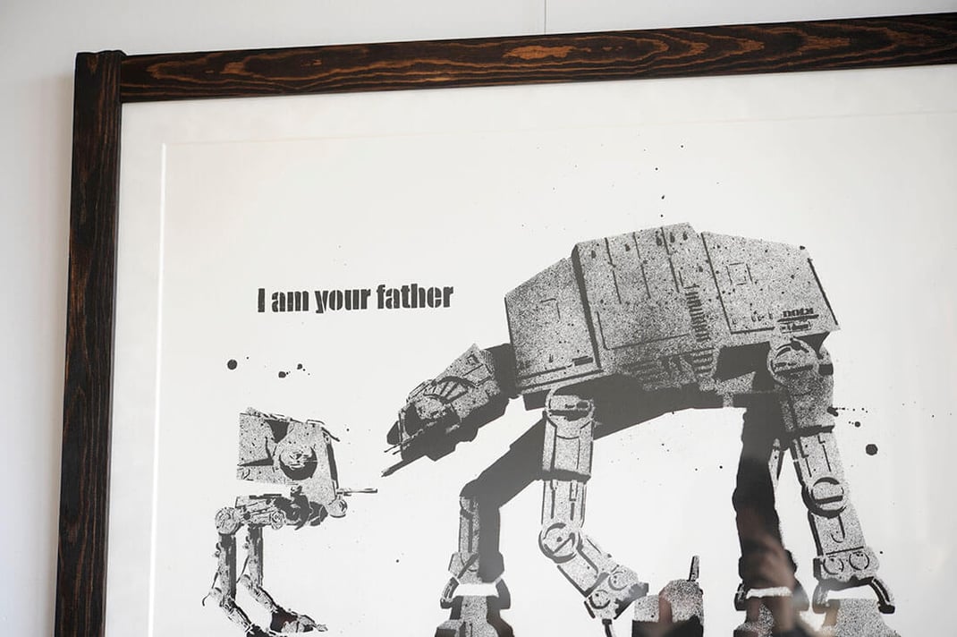 DOLK (ドルク)の"I am your Father"を額縁は「wabisabi Black Brown」、マットボードは「コットンスエードの白」で額装しました。