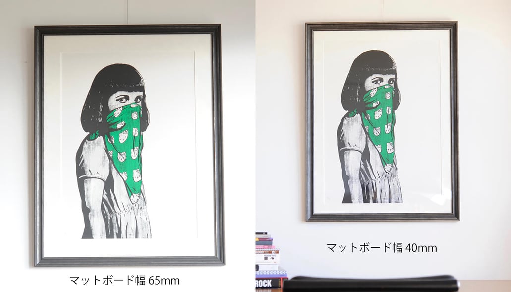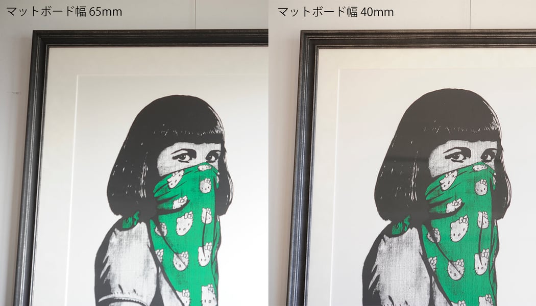マットボード幅65mm、マットボード幅40mmの写真を比較しやすいように横に並べてみました。