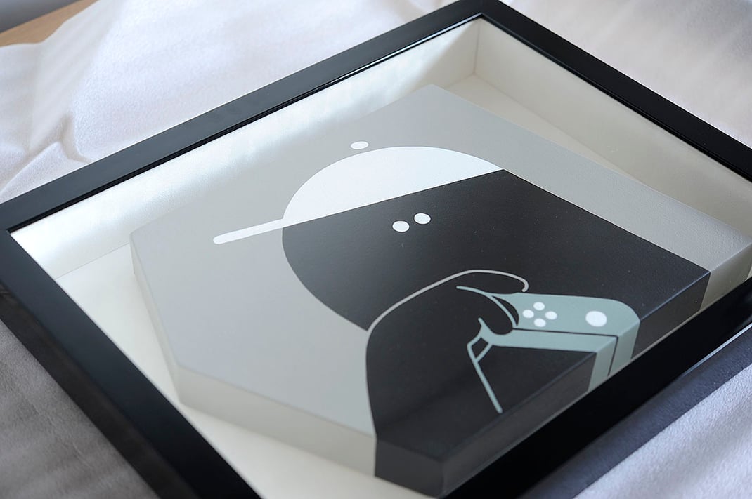 まだまだ勉強中の身で、今と比べると額装の知識は拙かった中、(そういえば立体作品の額装はノーマークだったな)と気付き、キャンバス作品の取り扱いが増えていた事も後押しして速攻でフレーム職人に聞いたり、ネットで調べたりしてみました。