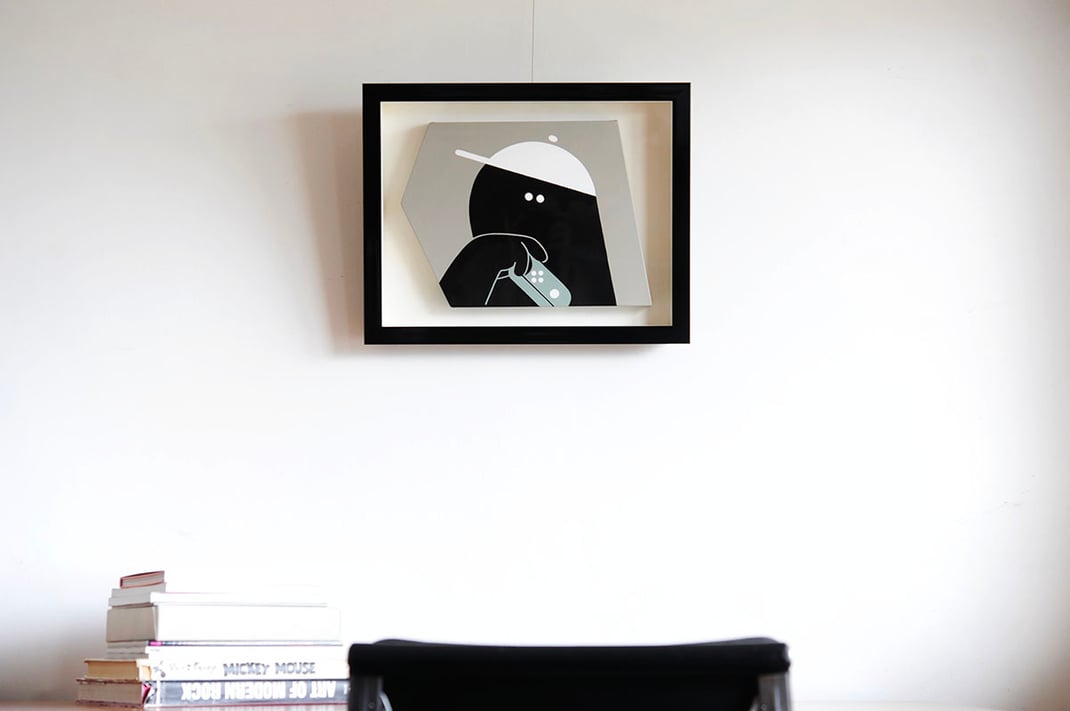 EMUのPEOPLE Ⅱを額縁はEternity Black、マットボードはコットンスエード白で額装しました。