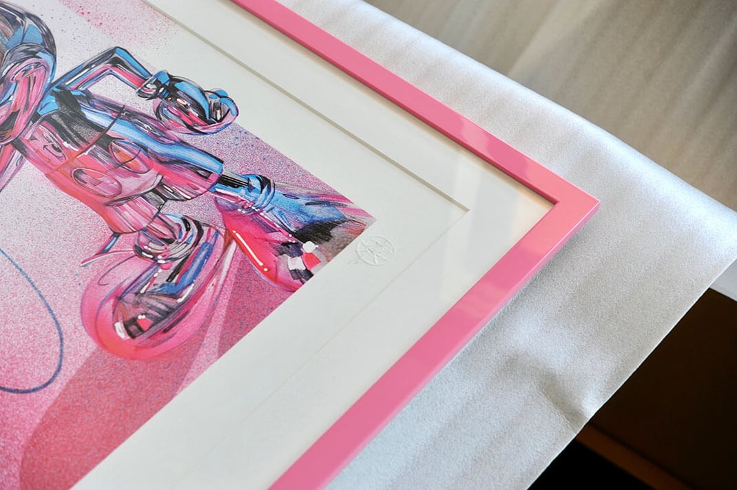 11月28日にご紹介したこちらの額装に引き続き、Fanakapan(ファナカパン)のYOU'RE SO FINE YOU BLOW MY MINDを額縁は「Eternity Pink」、マットボードは「ノーマル白」で額装しました。
