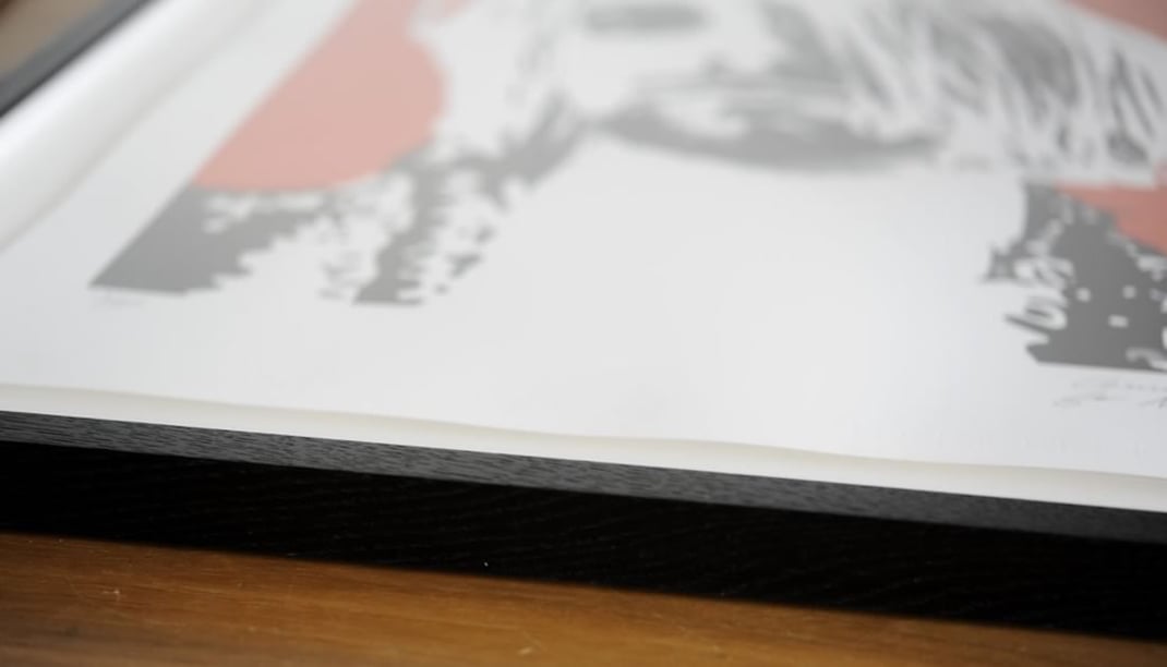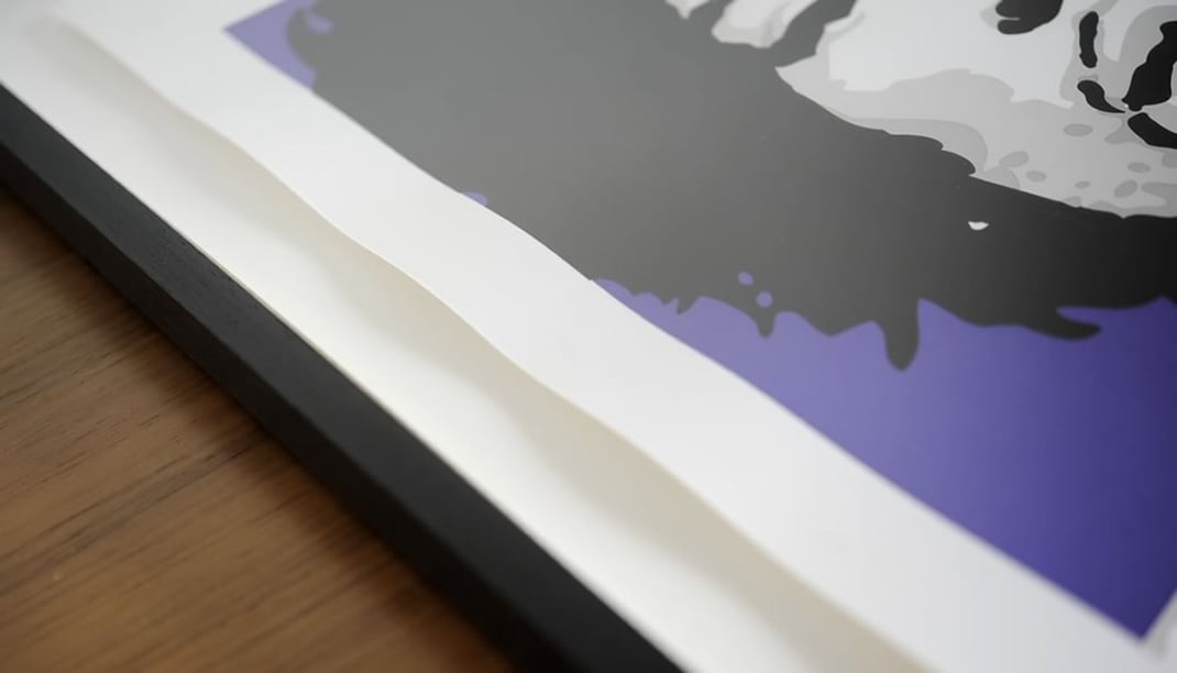 この「浮かせ」自体には全く問題ないですし、「作品をシート(紙)の状態には戻せない」という唯一であり、最大の欠点はあるものの、こちらのページでもお伝えしているように立体感を持たせた額装は格段に豪華さが増して仕上がるので、「作品を一枚の紙の状態に戻せない。」という欠点を考慮しても、選択肢の1つとしては十分ありだと思います。