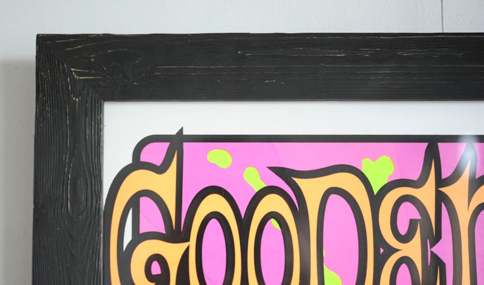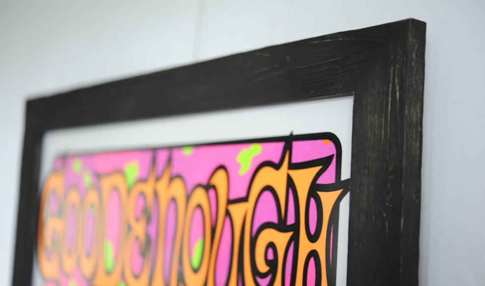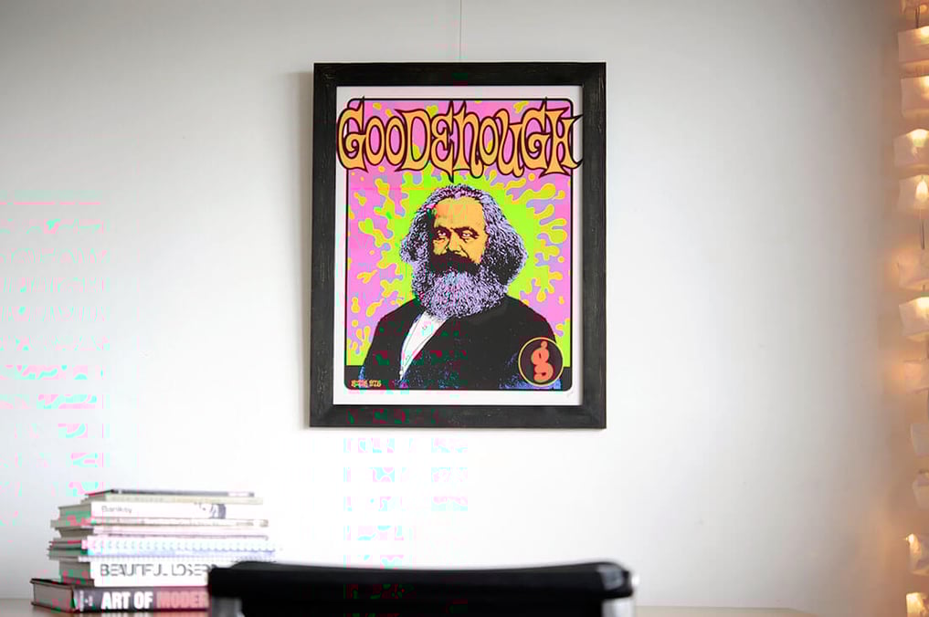 Frank Kozik(フランク・コジック)の日本人からすると代表作「Good Enough」を額縁は「wabisabi 1/1」で額装しました。