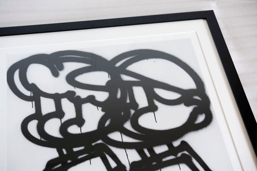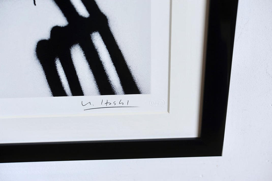 橋本ユタカのシルクスクリーン作品、無のための習作(見た目は偏りを生むのか#26)を額縁はEternity Black、マットボードはノーマル素材の白で額装しました。