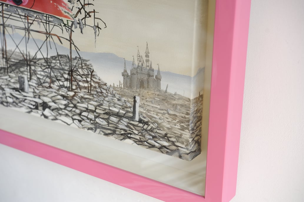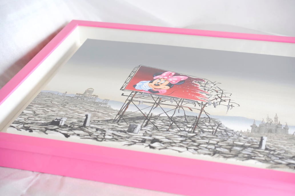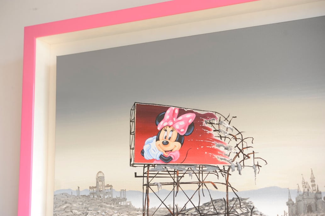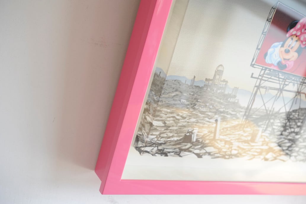 Jeff Gillette(ジェフ・ジレット)のハンドペイントキャンバス作品【Minnie Hiroshima】を額縁 Eternity Pinkで額装しました。