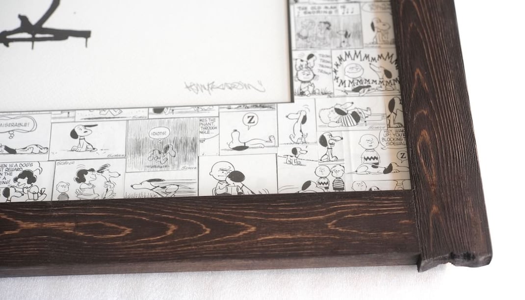 harles M. Schulz / チャールズ・モンロー・シュルツのスヌーピー(ピーナッツ)の貴重な1960年代のオリジナルのコミックを使用しています。贅沢にオリジナルのコミックをマットボードに、パッチワークのように貼り付けています。