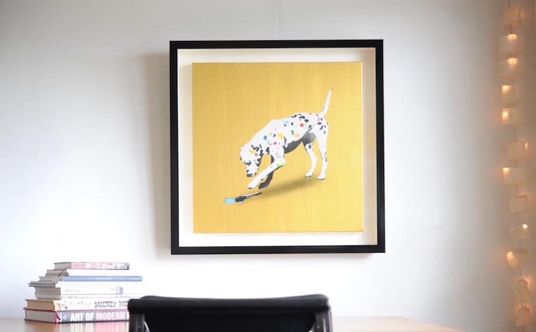 S様は遠方から会場の代官山まで足をお運びいただき、この作品を購入され、さらに額装をノイズキングにご依頼いただきました。