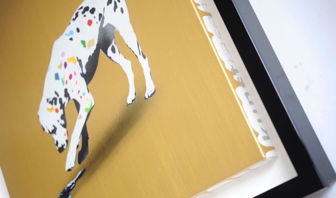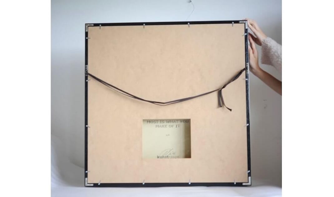 クンストラーゼンのキャンバス作品は裏面に作品タイトル、エディションナンバー、サインが入っているので、背板をくり抜いて、裏面にもアクリル板を付けて見えるようにしています。