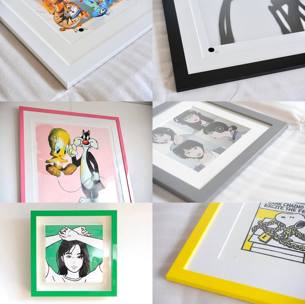 (各作品の余白によって、フレームサイズが変わって来ますので、事前にご連絡いただけた方がよりスムーズにお見積もりをお知らせできます。)