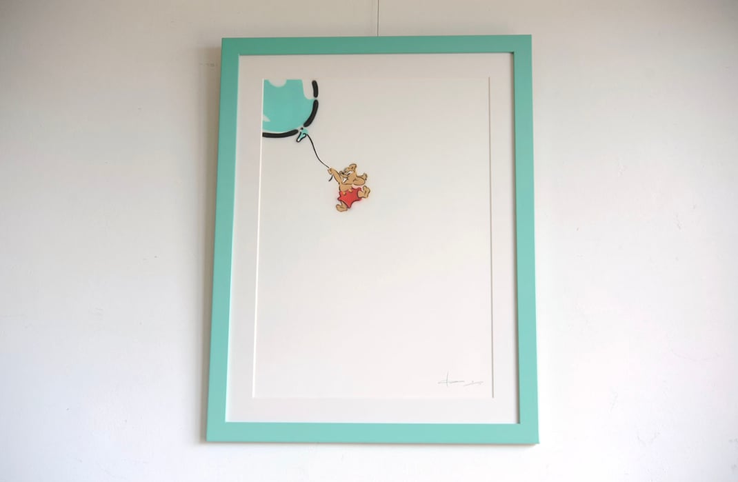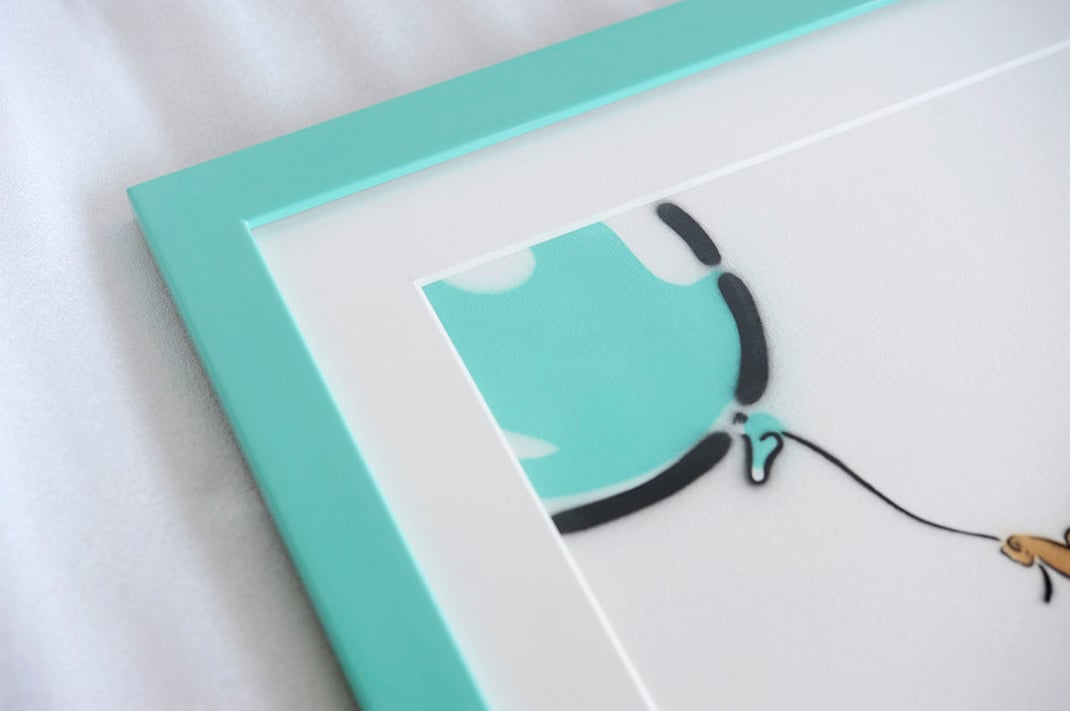 KurryのBe alright - Blueを額縁は「Eternity Tiffany Blue」、マットボードは「ノーマル白」で額装しました。