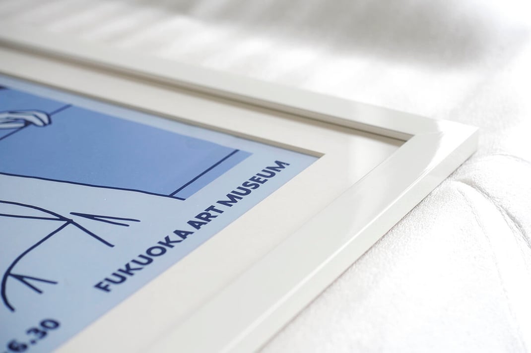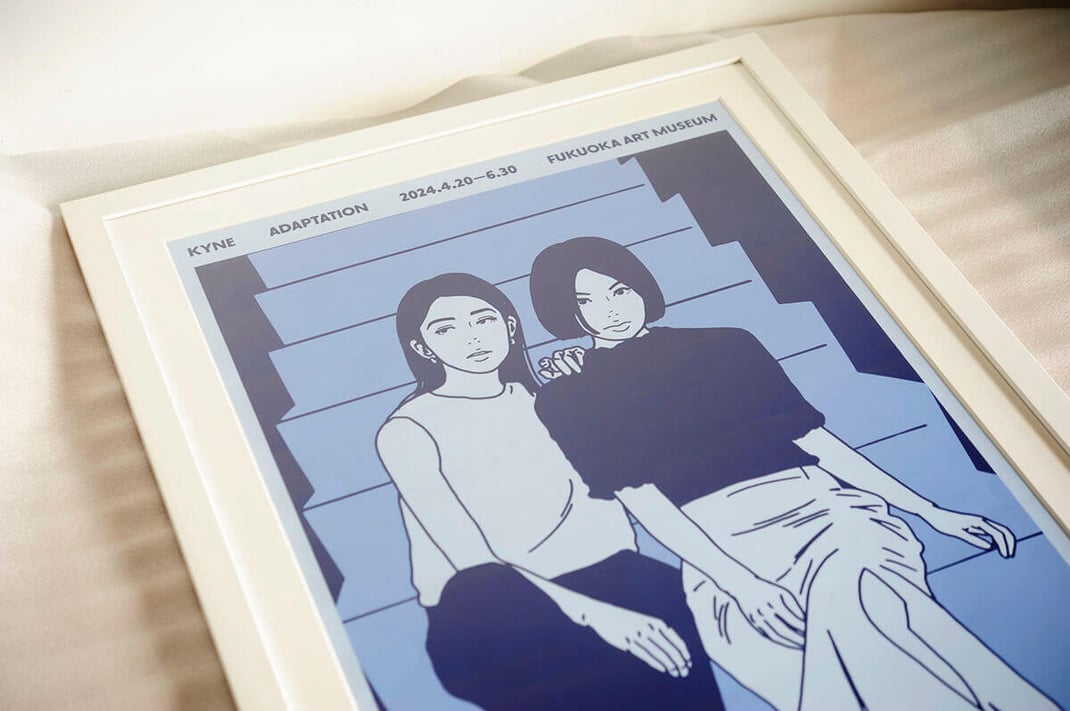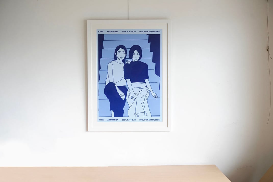 2024年4月〜6月、福岡美術館で開催した、KYNEのアート展【ADAPTATION】を記念して製作されたオフィシャルポスターを額縁は「Eternity White」、マットボードは「ノーマル白」で額装しました。