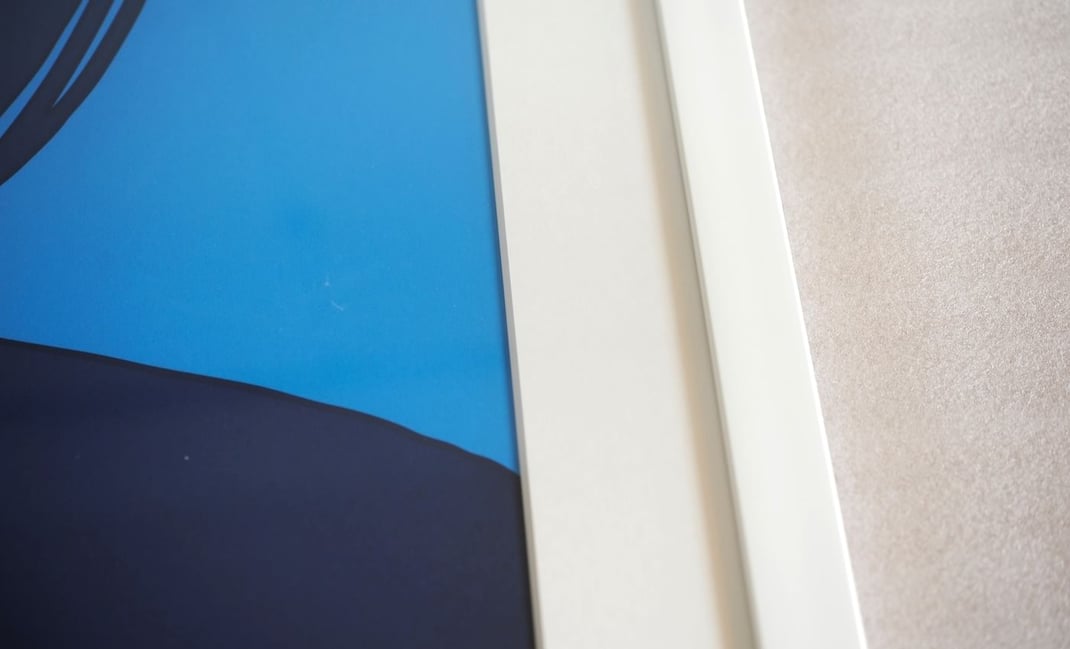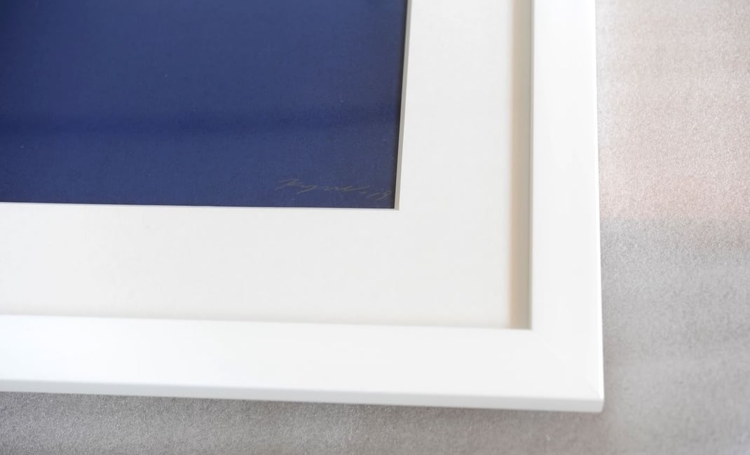 現時点でKYNE(キネ)のシルクスクリーン作品の中で一番高額で売買されているこちらの作品に、この数ヶ月で数件、額装を製作させていただきましたが、全てのお客様が額縁は「Eternity White」、マットボードは「ノーマル素材の白」を希望されました。