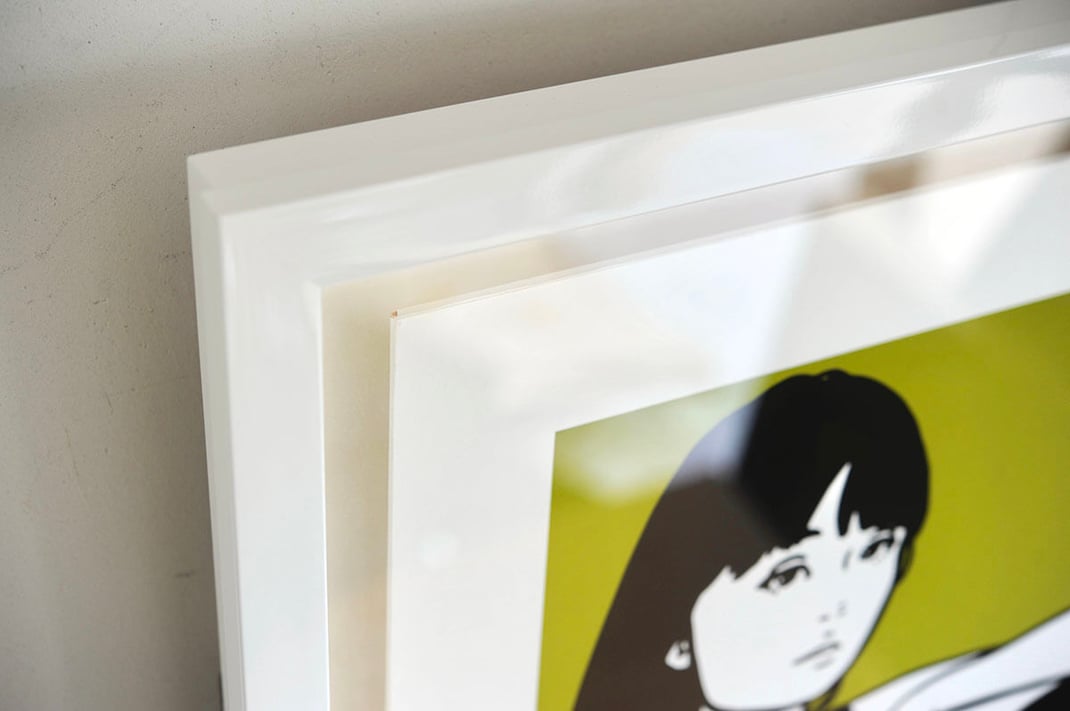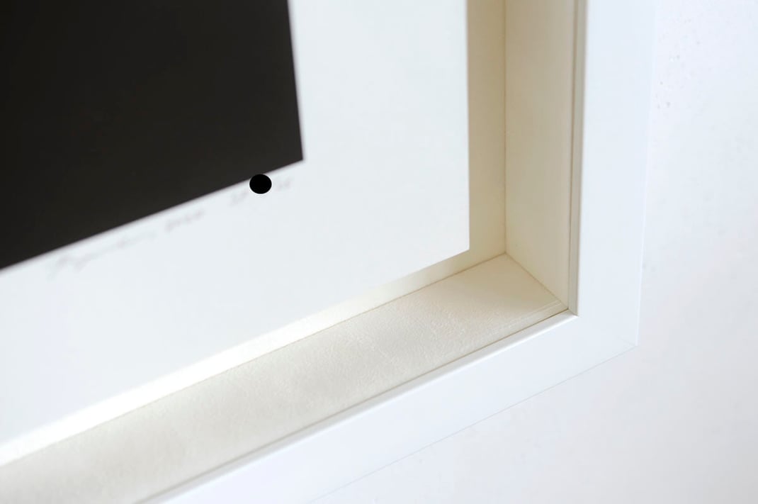8月12日のこちらの記事でも紹介したKYNEのUntitled:Aを、額縁は「Eternity White」、マットボードは「コットンスエード白」で立体的に額装しました。