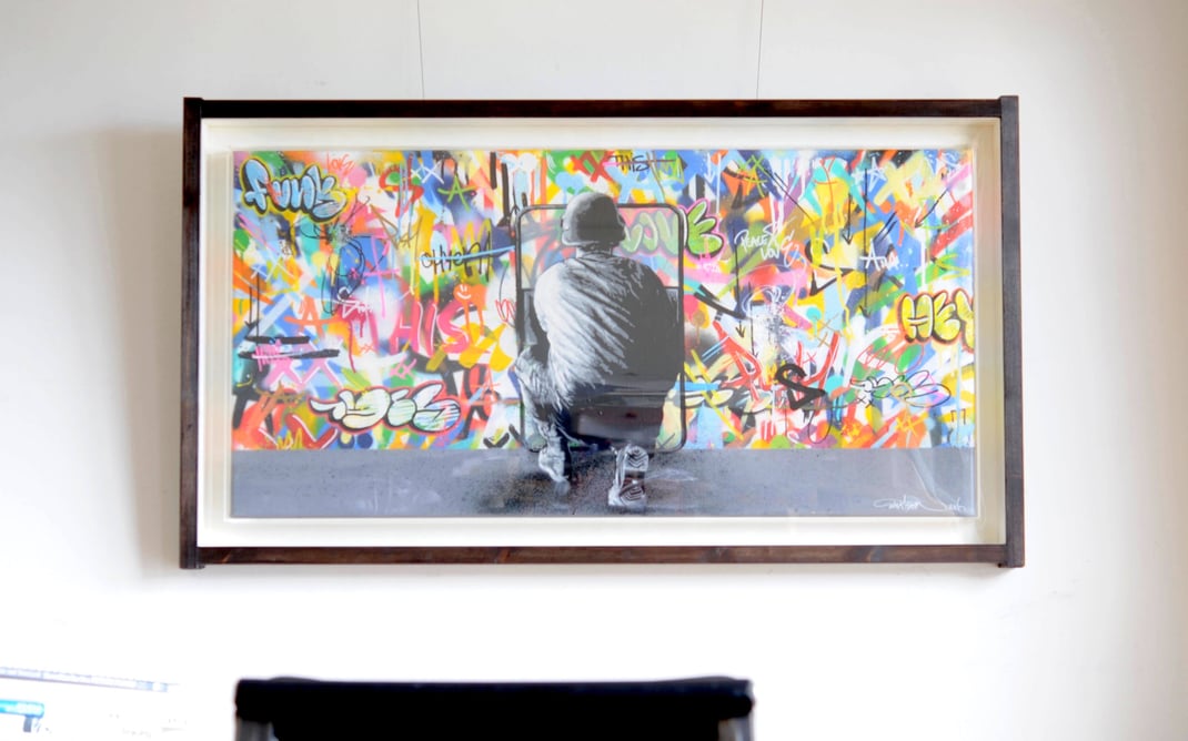 Martin Whatson(マーティン・ワトソン)のキャンバス作品【Zero Tolerance】をwabisabi black brownで額装しました。