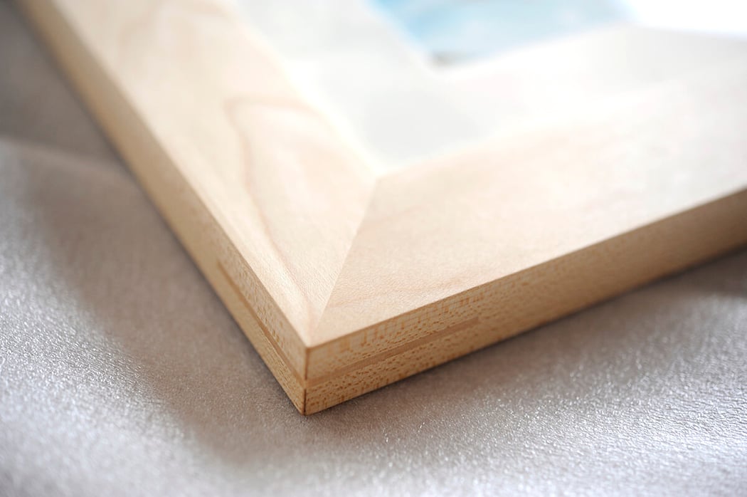 Maple材のフレームの角はこのような作りになっています。