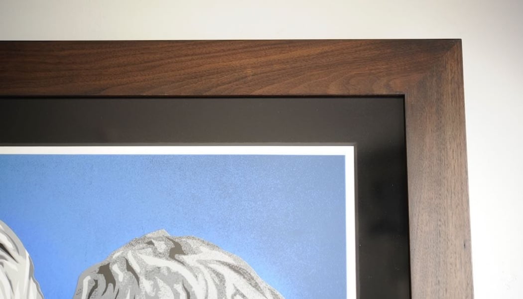 いくら色は黒でも、普通の紙素材のマットボードと合わせてしまうと、WALNUT Black Brownの存在感が勝ちすぎて、マットボードだけ間が抜けたように仕上がってしまい、ダメな額装になります。
