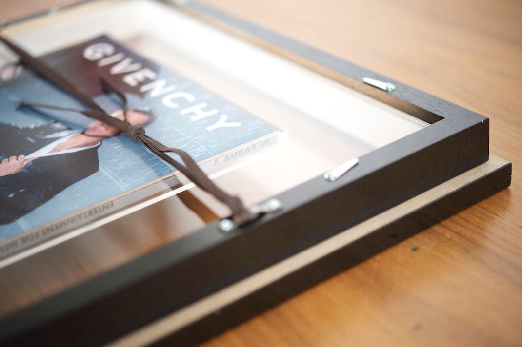 雑誌を立体的に額装する場合、「雑誌をどのように固定させるのか」