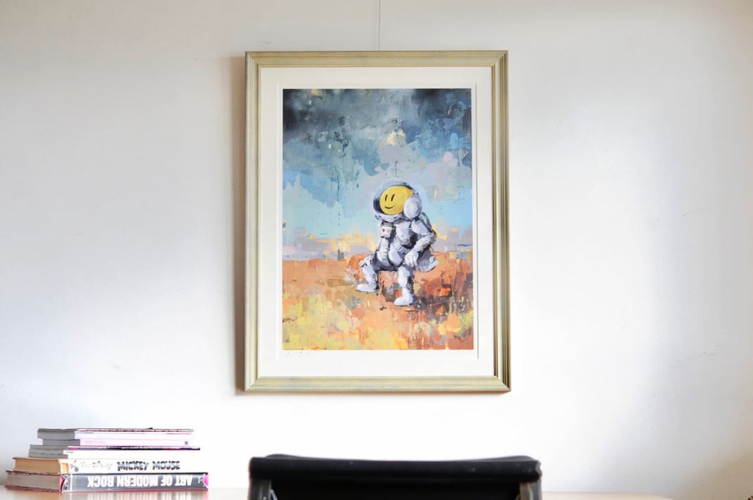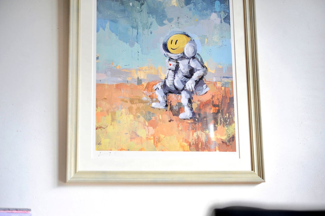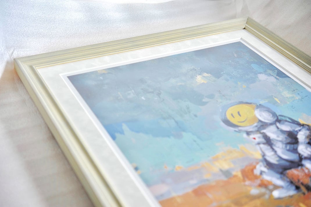 RYCAのSPACE CADET - STARGAZINGを額縁は「Italian White」、マットボードは「コットンスエード白」で額装しました。