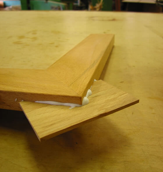 5.切り込みに糊を付け、木殺ししたサネを入れます。