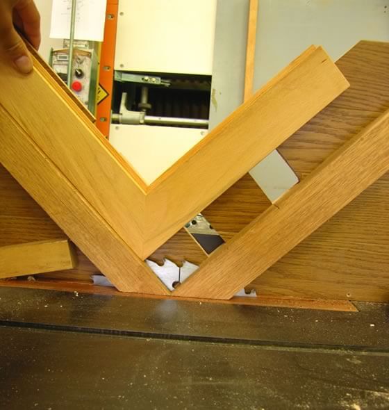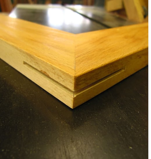 1. 組み上がったフレームのコーナに、ノコで3mmの切り込みを入れます。