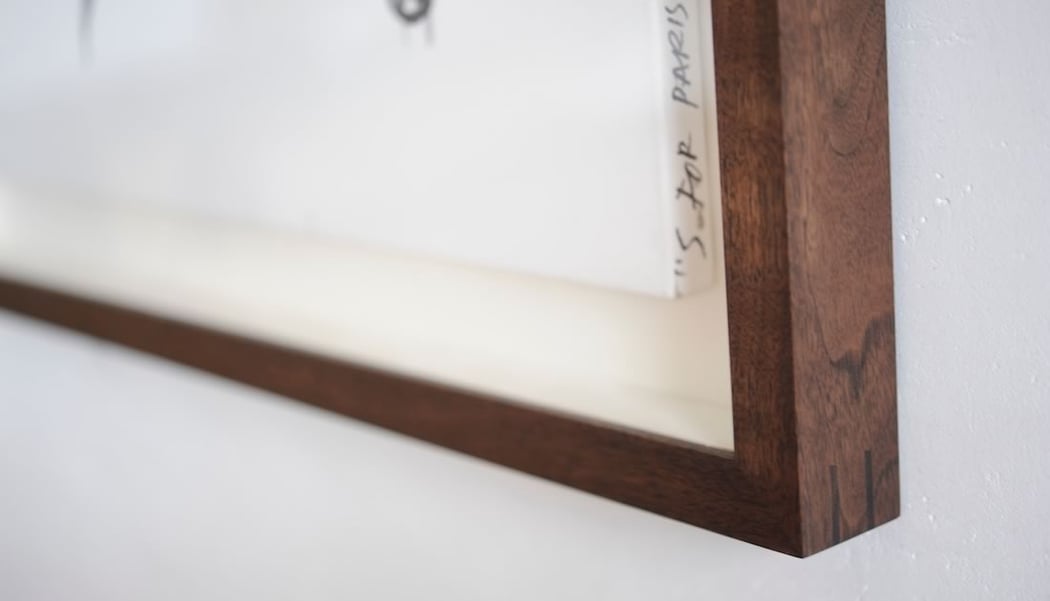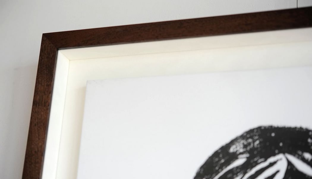 キャンバス作品の立体額装の場合は、側面からWALNUTの木目を楽しみます。