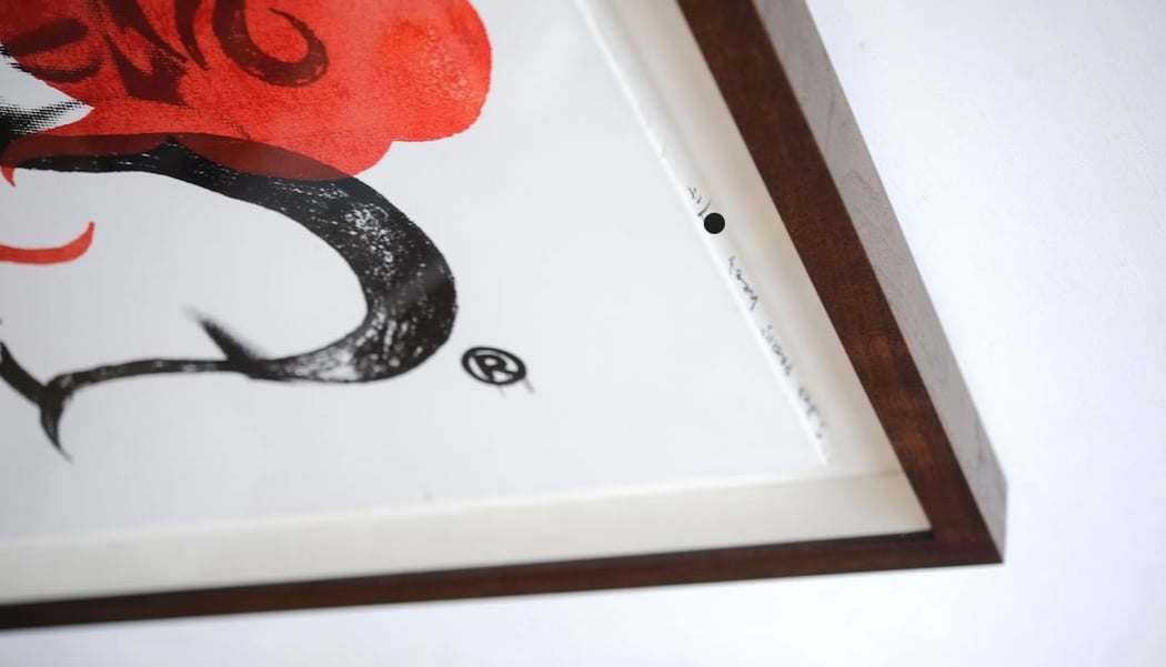 キャンバスの側面に記されたアーティストのサインやエディションナンバーを斜めの角度から眺めるのが、キャンバス作品の額装の一番の醍醐味です!