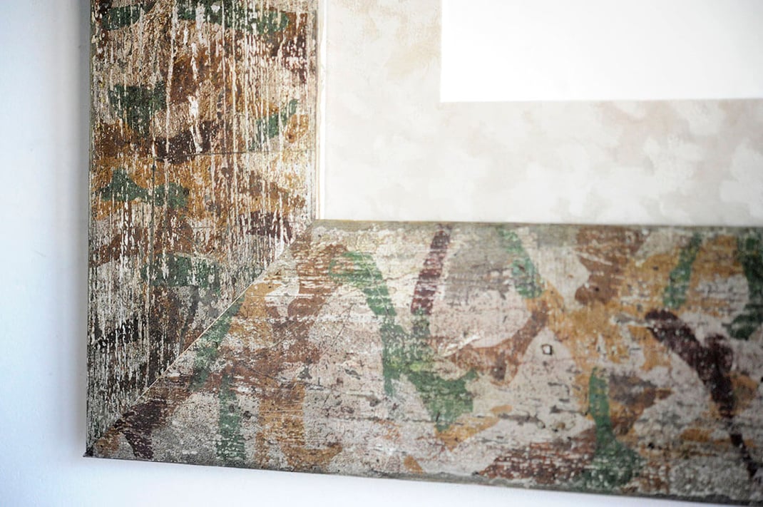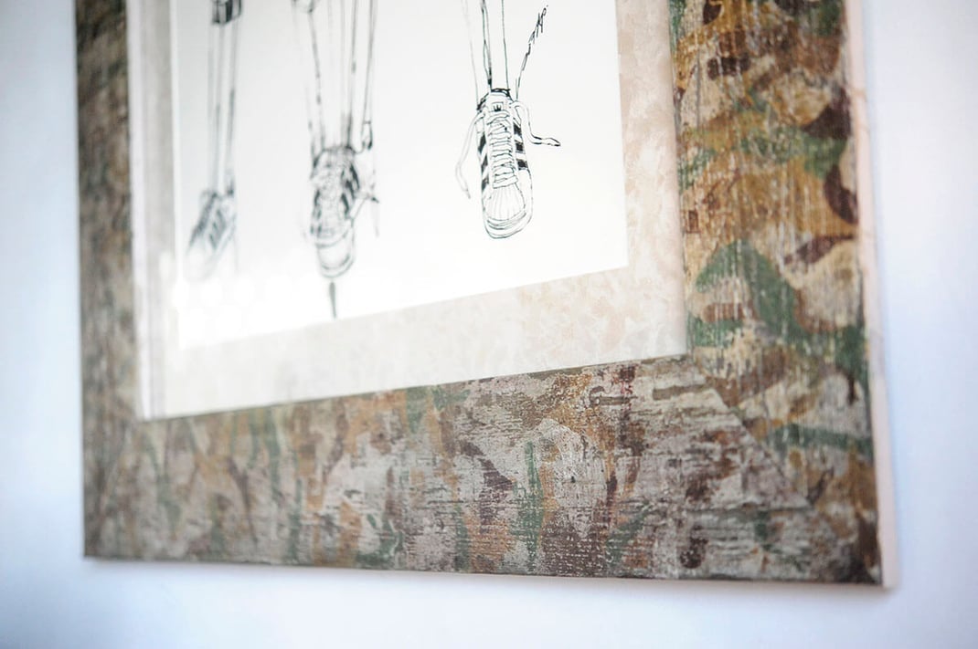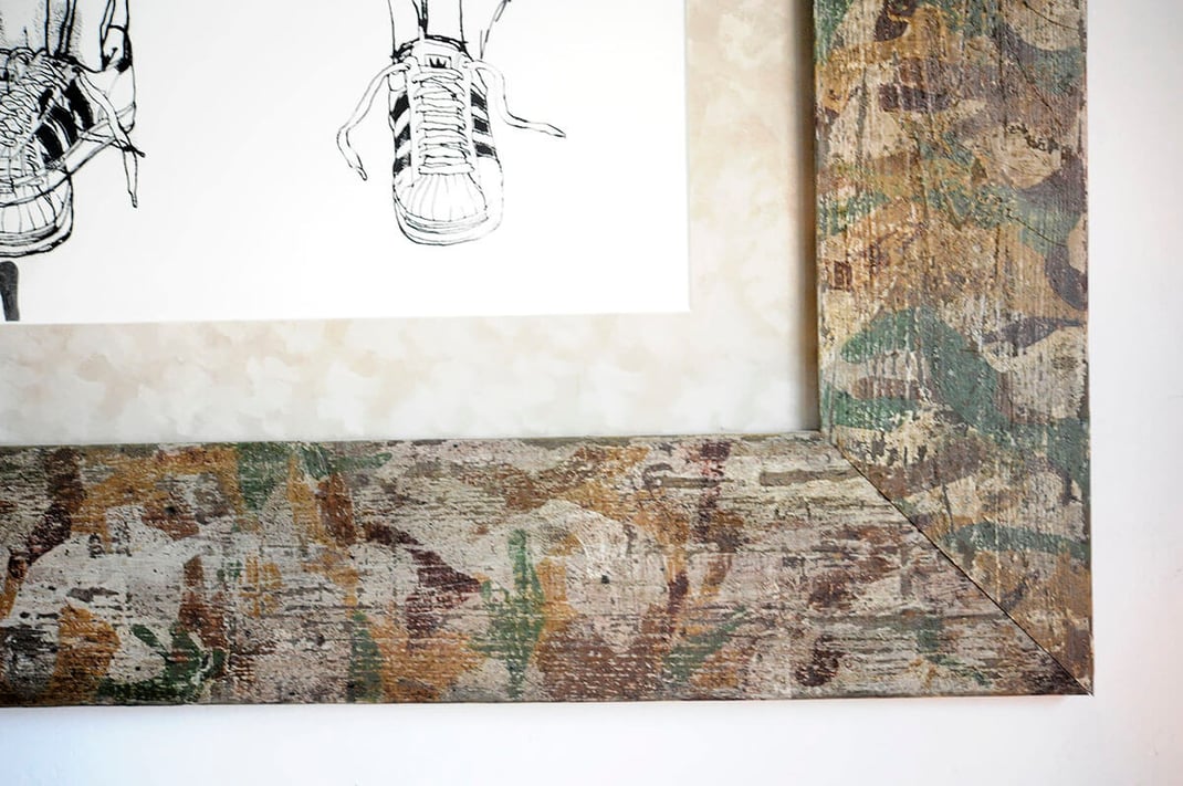 この迷彩柄の額装は実は3つの工房がパートごとに製作に関わって下っています。
