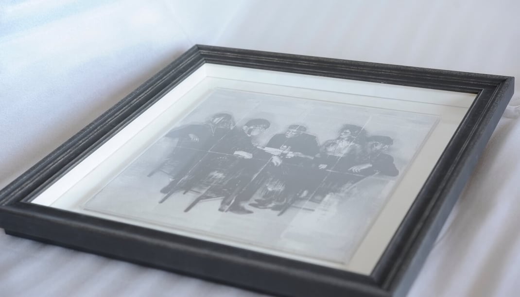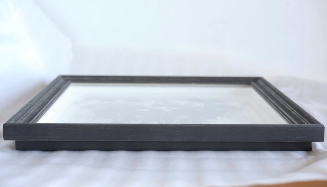 額縁は「Italian Black」、マットボードは「コットンスエード素材の白」で額装しました。
